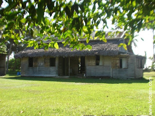 Image left: The view of the house from the road side of Anse Forbans is the back of the house while the front of the house overlooks the bay of Anse Forbans. The house has no glass windows but rather shutters that lock from the inside. Two veranda's surround the house one in the front and one on the road side. The main portion of the house has wooden floors and a high ceiling.